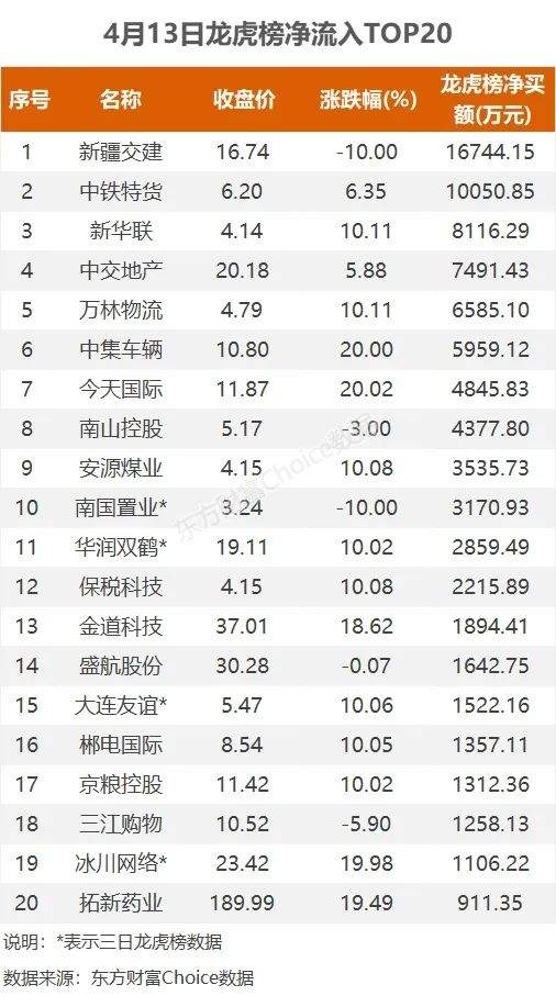 龙虎榜:1.67亿抢筹新疆交建,机构净买12股