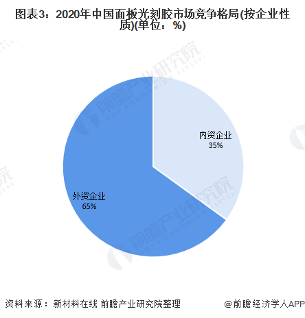 目前,我国中低端光刻胶产品在全球占有一席之地,但高端光刻胶基本全部依赖进口。在面板光刻胶市场中,我国的面板光刻胶市场主要由外资企业占领,占比达65%。