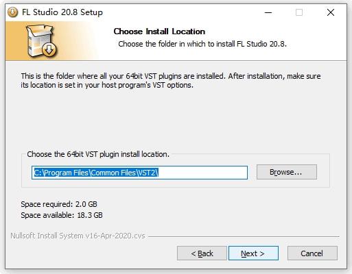 这里可以选择合适的硬盘安装FL Studio以及VST插件的安装路径,默认都会装在C盘中,C盘空间不够的朋友可以在这里更改至其他盘符,应用默认安装目录或者更改了安装路径之后点金点“Next”进行下一步即可。