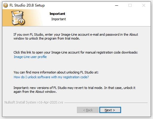 这里我们直接点击“NEXT”进行下一步即可,此处界面内容是需要你去注册一个FL Studio账号,在安装时我们可以直接跳过这一步,关于FL Studio账号的注册与激活方法,下滑可以看到哦~