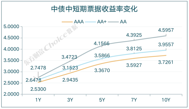 4月14日,中债5年中短期票据(AAA)收益率报3.3670%,下行1.21BP;中债5年城投债(AAA)收益率报3.3821%,下行2.47BP。