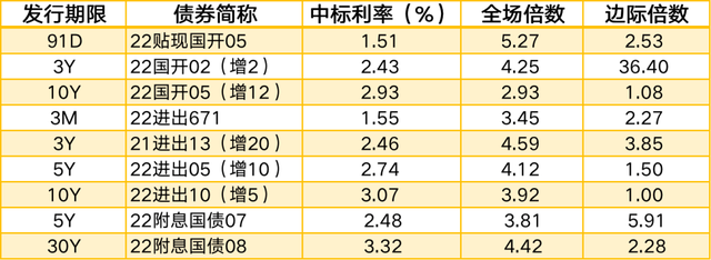 同业存单方面,今日发行416.0亿,到期1301.6亿,发行环比下降73.45%,发行额前五分别是:22渤海银行CD136、22南京银行CD070、22宁波银行CD091、22南京银行CD069、22苏州银行CD100。其中,1M发行28.8亿,AAA票面利率平均值为2.15%;3M发行220.6亿,AAA票面利率平均值为2.278%;6M发行53.3亿,AAA票面利率平均值为2.453% ;9M发行21.4亿,AAA票面利率平均值为2.50%;1Y发行91.9亿,AAA票面利率平均值为2.664%。