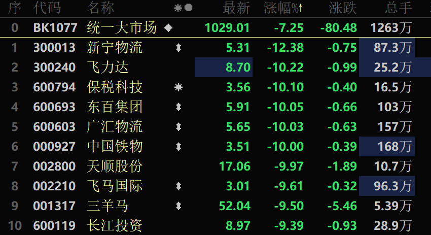 统一物流板块大跌,什么题材什么板块炒完都是一地鸡毛