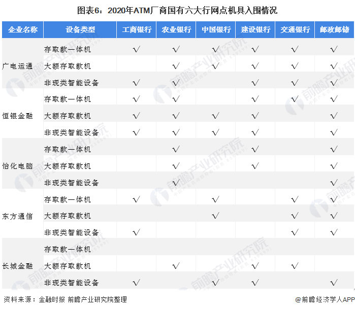 随着国内移动第三方支付的快速发展,国内ATM机行业遭受冲击,国外企业纷纷推出国内市场,目前,广电运通ATM机行业市场龙头地位稳固,连续十三年蝉联网点设备销量第一。根据《金融时报》发布的《2020年银行网点市场综述》中的数据显示,广电运通连续13年蝉联网点设备销量第一。从2020年度市场表现看,广电运通以六大行中最好入围表现及最高市场份额,连续十三年蝉联网点设备销量第一。