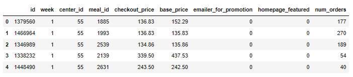 import pandas as pd data = pd.read_csv('data.csv') data.head()output
