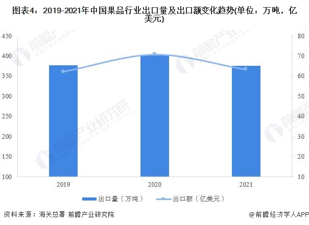 本文核心数据:中国果品产品出口数据、中国果品产品进口数据等