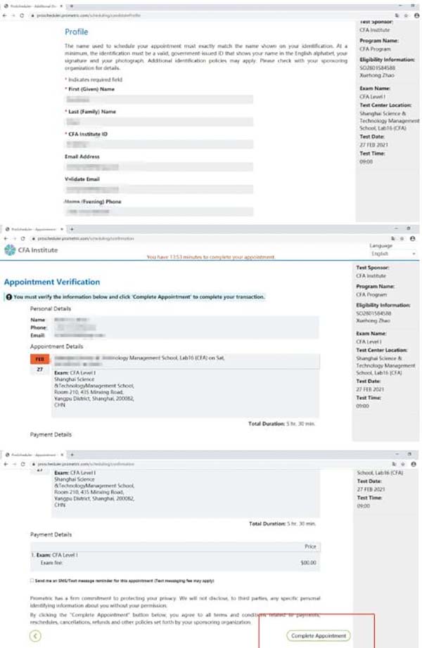 考生预约CFA考试的时间和考位,可以按照以下的流程: