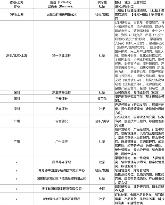 12个省市头部金融机构招聘