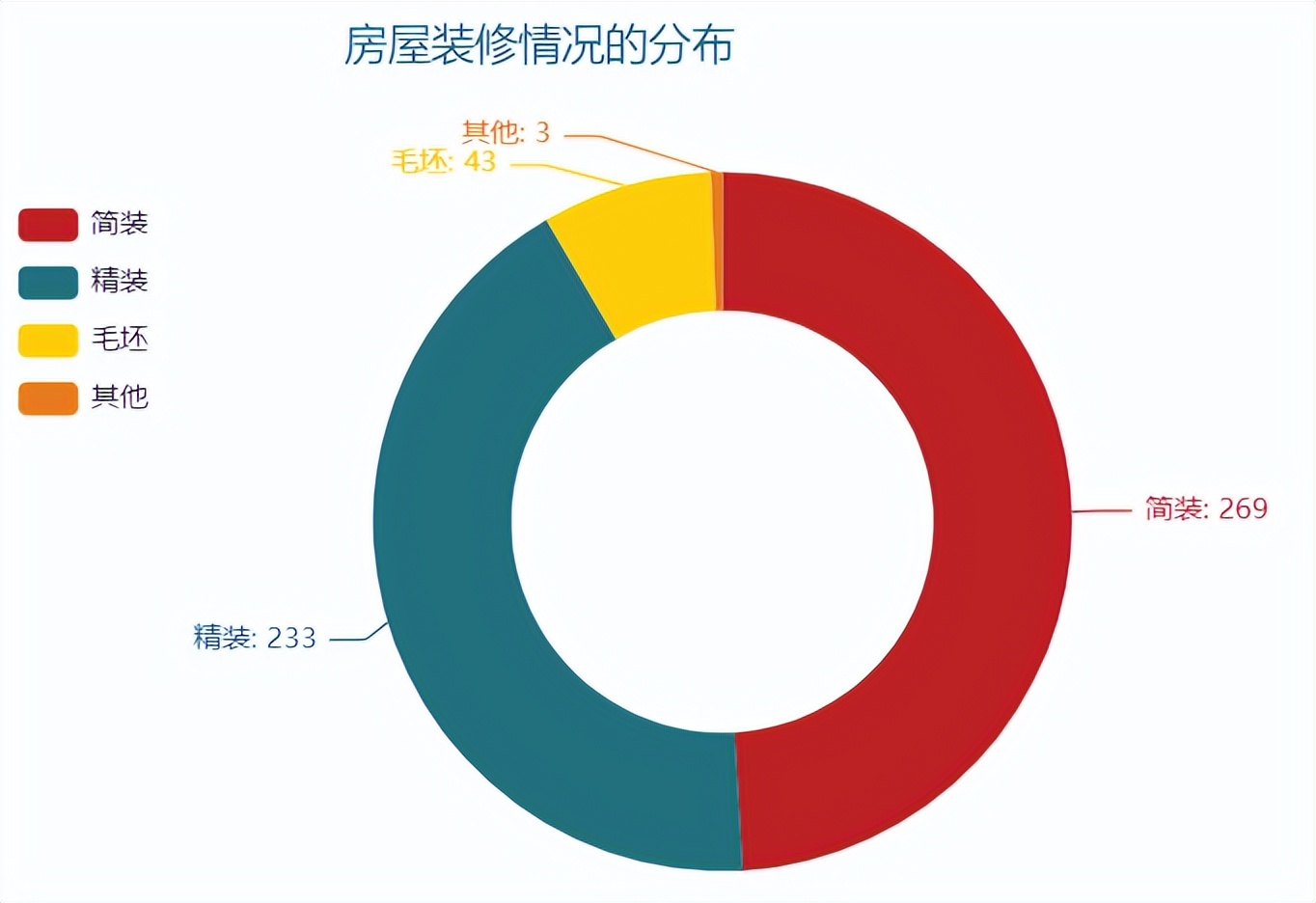 我们再来看一下房屋的装修情况,市场上的二手房大多都是以“简装”或者是“精装”为主,很少会看到“毛坯”的存在,具体如下图所示