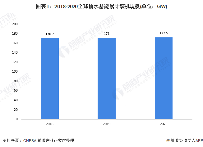 抽水蓄能是世界各国保障电力系统安全稳定运行的重要方式,数据显示,2018-2020年,全球抽水蓄能累计装机规模稳步增长,截至2020年末,抽水蓄能累计装机规模已达172.5GW。