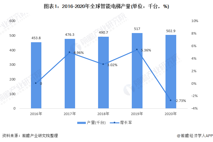 ——2016-2019年全球智能电梯持续增长,2020年同比下滑