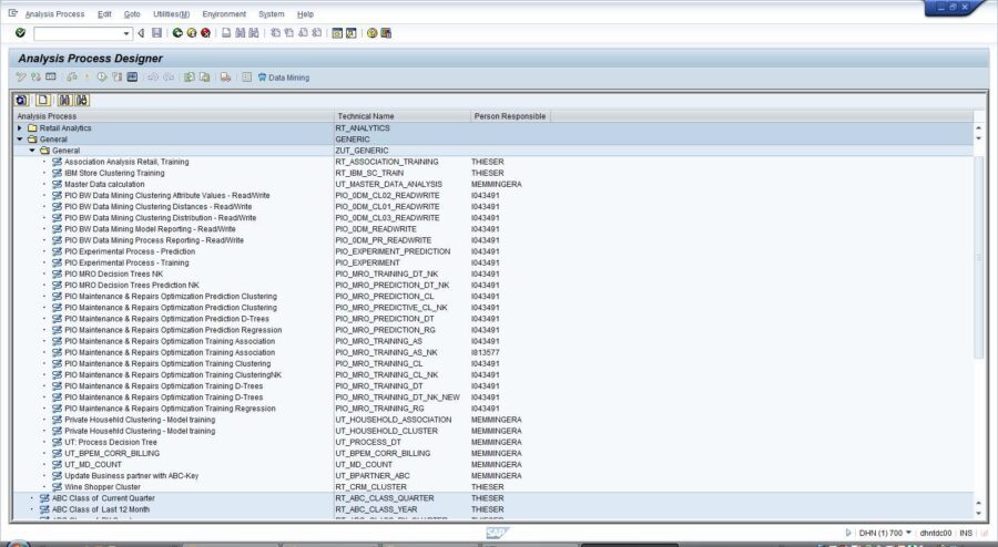 启动时,仪表板会显示我们特定 SAP BW Data Mining 实例中当前可用的进程列表(请参见下面的屏幕截图)。该列表中已启用以下列: