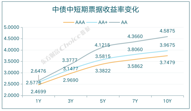 中债5年中短期票据(AAA)收益率报3.3822%,上行1.00BP;中债5年城投债(AAA)收益率报3.4131%,上行0.24BP。