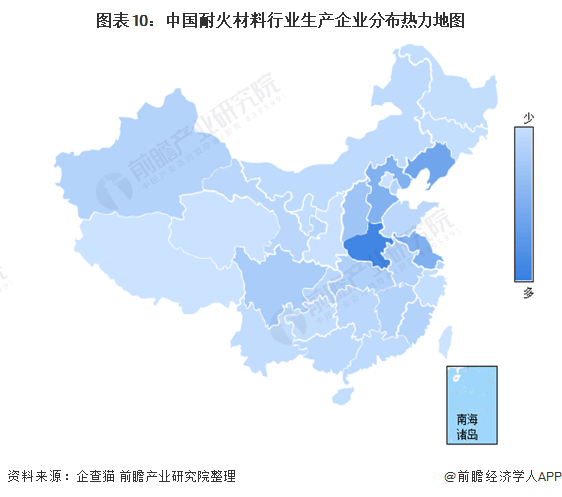 耐火材料行业具有两大区域性特点分别是资源型和市场型,无明显的周期性和季节性。从资源性看河南、山西等地拥有丰富的铝矾土资源,辽宁镁矿储量大,山东有丰富的石墨、粘土资源。因此河南、山西、辽宁、山东成为中国耐火材料的最主要产区。