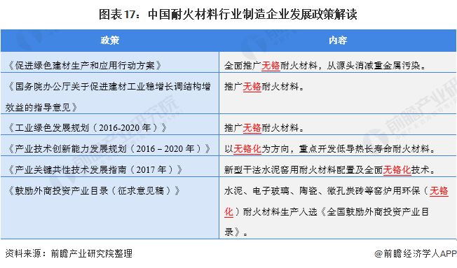 近几年,国家把耐火材料行业作为独立行业纳入国家主管部门的管理序列,工信部相继出台了《关于促进耐火材料产业健康可持续发展的若干意见》、《耐火材料行业规范条件(2014 年本)》和《耐火材料行业规范公告管理办法》,规范、鼓励行业发展。
