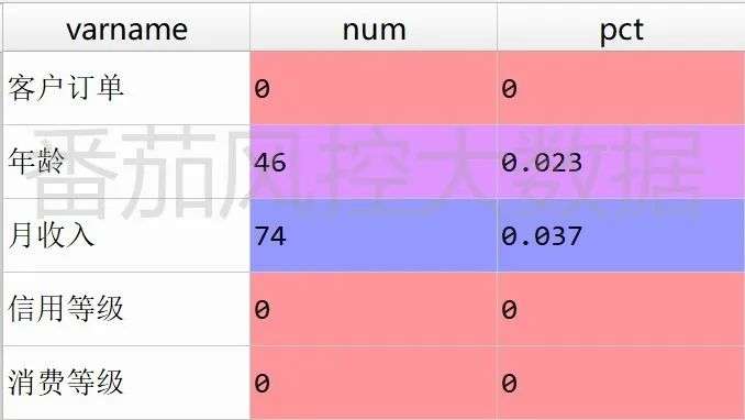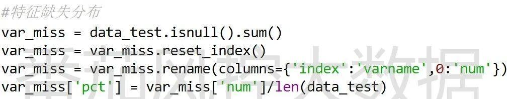 对样本特征的缺失情况进行统计汇总,python代码实现与结果输出分别如图5、图6所示。