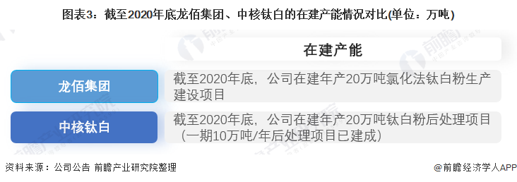 从钛白粉在建产能来看,两者在建项目均为20万吨,但截至2020年底,中核钛白的项目已经完成一半。