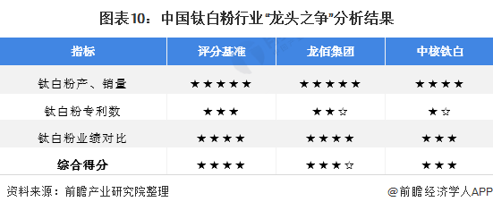 在钛白粉行业中,钛白粉产量和销量决定了行业的定价能力,而钛白粉业绩能反应公司的经营概况。基于前文分析结果,前瞻认为,龙佰集团在钛白粉产量、销量、技术以及业绩方面均占有优势,目前是我国钛白粉上市企业中的“龙头”。