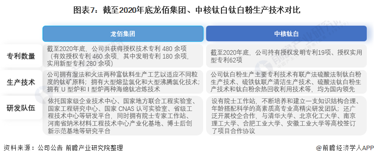 在专利数量方面,截至2020年底,龙佰集团共获得授权技术专利480余项,而中核钛白2020年年报显示,仅有19项授权发明专利和62项授权实用型专利,两者差距较大。研发队伍来看,两者各有长处,龙佰集团倾向于利用各类国家级研究中心和实验室进行研发,而中核钛白更倾向于与校企合作进行研发,并打造自己的专业团队。