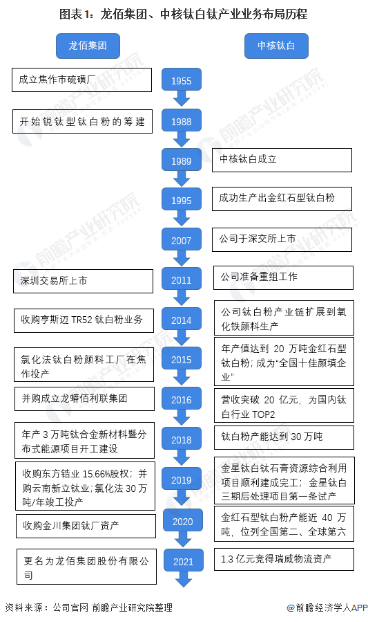 1、龙佰集团VS中核钛白:钛白粉业务布局历程