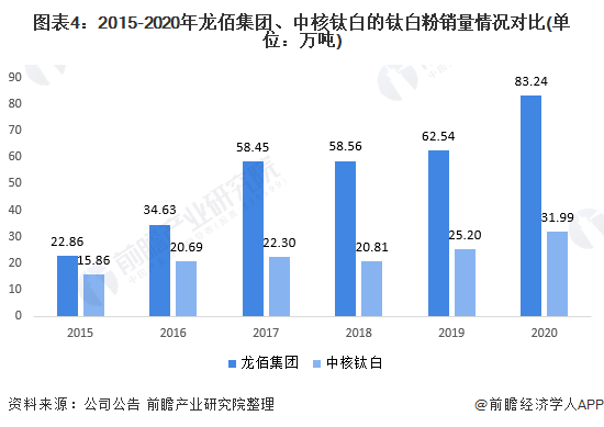 ——钛白粉销量:龙佰集团销量更高、产品种类更多
