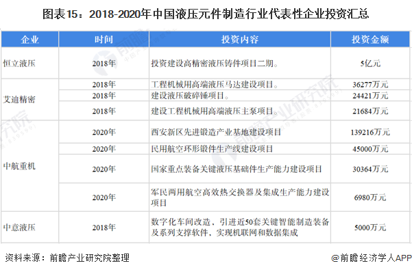 《“十四五”纲要》中提出首先要提升产业链、供应链水平,锻造产业链、供应链长板,立足我国产业规模优势、配套优势和部分领域先发优势,打造新兴产业链,推动传统产业高端化、智能化、绿色化。在这一趋势下,中国液压元件制造行业的投资也主要集中构建在智能化、高端化的生产线上,2018年开始,液压行业的龙头企业纷纷投资建设智能生产线,实现机联网,提高生产力。