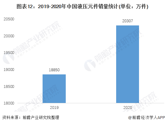 据中国机械工业统计年鉴对重点关联企业的统计资料显示,目前我国液压行业的产销率为97.8%,按照该产销率指标结合中国机经网产品产量的统计,得出产品销量数据。2019年中国液压元件的产品销量为18850万件,2020年产品销量为20307万件。