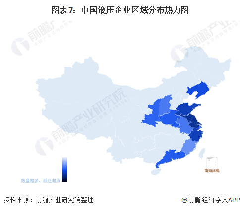 1、区域竞争:液压行业多聚集于东南沿海区域