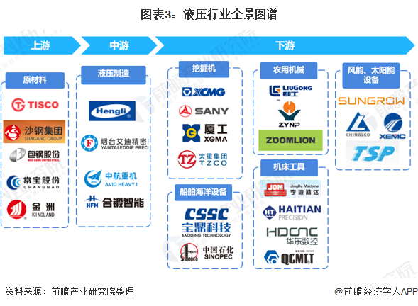 我国液压行业上游原材料代表性企业有包钢股份、沙钢股份、常宝股份、金洲管道等;中游的液压元件制造企业有恒立液压、艾迪精密、中航重机和合锻智能等企业,下游挖掘机行业的代表性企业有徐工机械、三一重工、厦工股份等,船舶海洋设备行业的代表性企业有宝鼎科技、中国重工、石化机械,农用机械行业的代表性企业有柳工、中原内配、中联重科,机床工具的代表性生产企业有宁波精达、海天精工、华东数控,风能、太阳能设备的制造企业有阳光电源、银星能源、湘电股份、泰胜风能等。