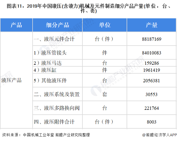 (注:该数据来源于中国机械工业2020年年鉴(数据节点为2019年),2021年年鉴尚未公布,且由于年鉴中是对34家液压重点关联企业的产品产量数据进行统计,所以与产品的总体数据存在差异。)