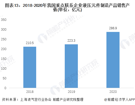 根据上海液气密行业协会披露数据,2018-2020年,我国重点联系企业液压元件制造产品销售产值呈不断上升趋势。2020年,液压行业重点联系企业一共81家,共完成销售产值286.9亿元,同比增长28%。