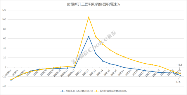 和历史不一样的是,市场这一次对房地产的回应没有如预期。Choice数据显示,2022年3月,国内房屋新开工面积和销售面积同比分别下降17.5%和13.8%。
