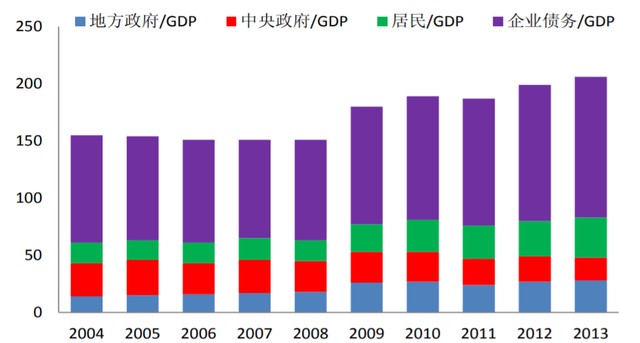 当年,拉动中国GDP增长的“三驾马车”里的投资和进出口都出现明显下滑。2013年底非金融企业的债务非常高,超120%,不仅高于美国(78%)、也远高于泰国(52%)等新兴市场国家。