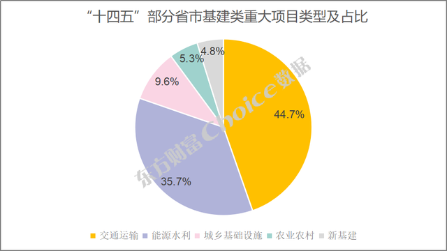 从“十四五”各省市重大项目规划来看,交通运输、能源水利占比超七成,是基建领域的绝对大头。此次会议将其定义为网络型基础设施,无论从体量还是重要性来看,对整个基础设施均起到引领作用。