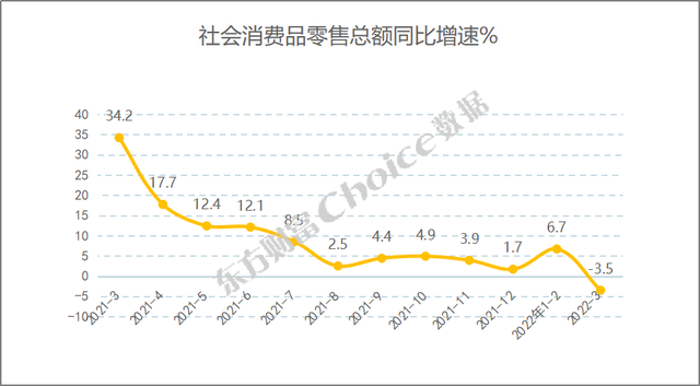 2022年,形势变得更加复杂。拉动GDP的“三驾马车”,3月社会消费品零售总额下跌3.5%,商品零售与餐饮收入同比分别下降2.11%和16.38%,代表居民消费的短期借贷也下降了。