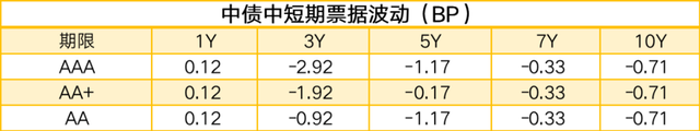 中债5年中短期票据(AAA)收益率报3.3654%,下行1.17BP;中债5年城投债(AAA)收益率报3.4044%,上行0.22BP。