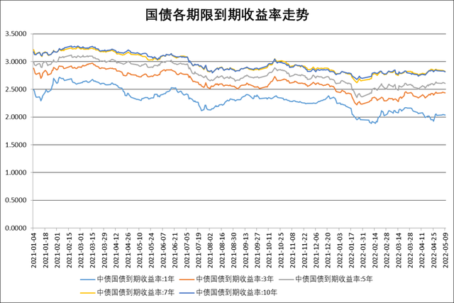 5月9日,中债10年国债收益率报2.8154%,下行1.09BP;自5月4日美联储宣布加息50个基点以来,美债收益率持续攀升。截至5月6日收盘,10年期美债收益率报3.1200%,较5月4日收盘上升19个基点,连续两个交易日收盘收益率在3%以上,中美国债利差持续收窄。