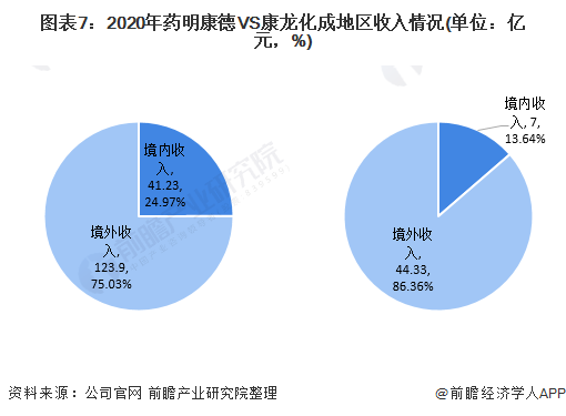从2020年的地区收入来看,药明康德和康龙化成都主要以境外收入为主;均超过了半数以上。药明康德的境外收入达到了123.9亿元,占总收入比重的75.03%;境内收入达到了41.23亿元,占总收入比重的24.97%。康龙化成的境外收入达到了44.33亿元,占总收入比重的86.36%;境内收入达到了13.64亿元,占总收入比重的13.64%。由此可看出,康龙化成对外商的依赖度较药明康德高。