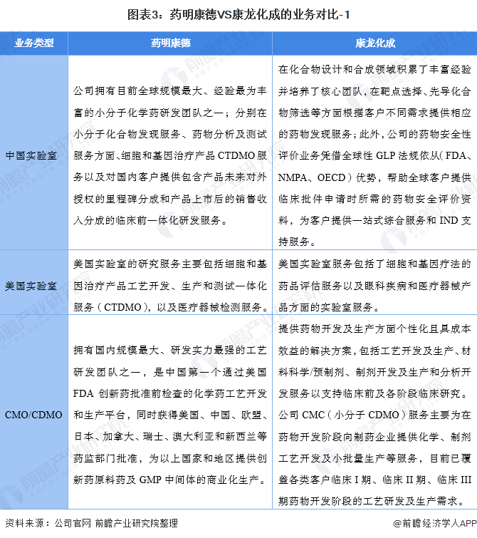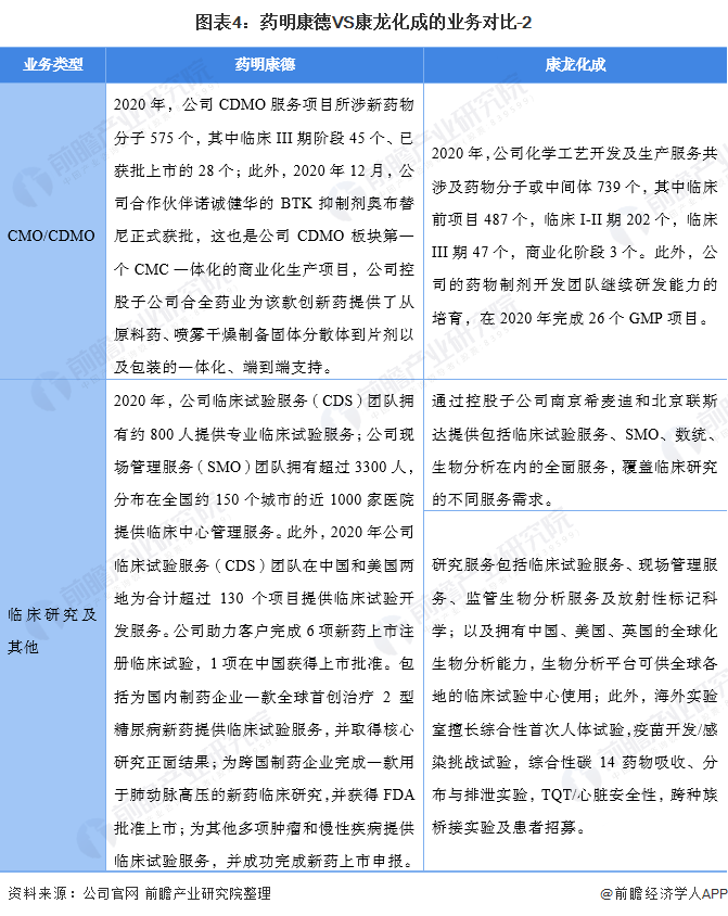从产品种类看,经过多年的发展,药明康德和康龙化成都形成了实验室服务、CMO/CDMO业务和临床研究及其他业务三大板块;难分伯仲。