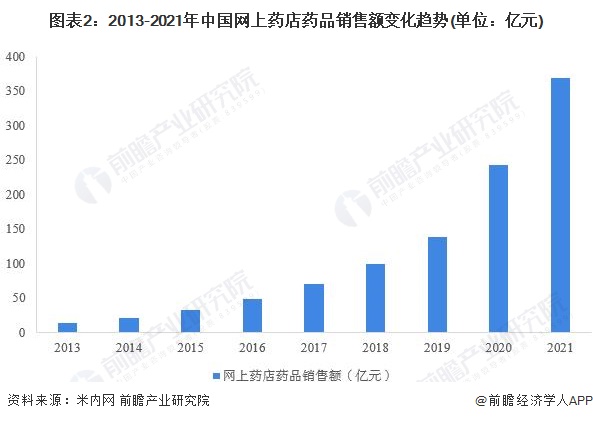 据米内网统计数据显示,2021年我国网上药店市场药品销售额达368亿元,同比增长51.49%。