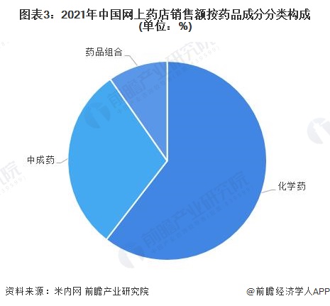 从实现销售额的药品类型分布来看,化学药的市场份额最大,2021年占比为60.48%;中成药销售额占比为29.82%。