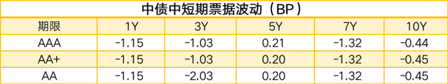 中债5年中短期票据(AAA)收益率报3.3376%,上行0.21BP;中债5年城投债(AAA)收益率报3.3811%,下行0.60BP。
