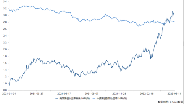 5月11日,中债10年国债收益率报2.8240%,上行1.51BP;5月10日美国十年国债收益率升至2.9900%,下行6.0BP。在美联储紧缩预期及控通胀的经济周期下,近期美债收益率偶有震荡,但整体呈现上行趋势,中美国债利差持续收窄。