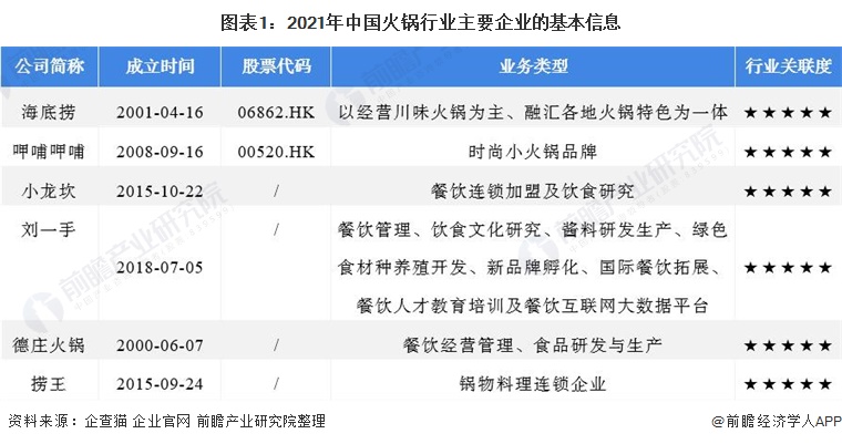 火锅是中国独创的美食,历史悠久,是一种老少皆宜的食物。目前,我国火锅行业参与者众多,全国火锅店数量超60万家,且大部分都是中小企业。我国火锅行业的主要品牌包括海底捞、呷哺呷哺、小龙坎、刘一手等。