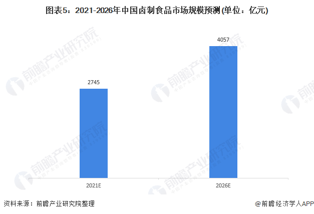 在消费升级的背景下,卤制食品未来仍将维持稳定增长趋势,预计未来五年佐餐及休闲卤制品行业仍能分别维持7%和10%的复合增速,至2026年佐餐卤制食品行业零售额有望达2449亿元,休闲卤制食品市场零售额有望达1608亿元,卤制食品总规模约达4057亿元。