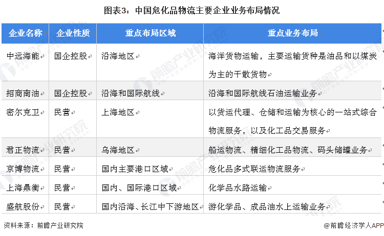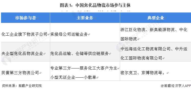 参与主体:三大类危化品物流企业业务布局各异
