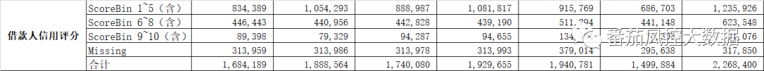 比如对于逾期30天以上的资产,其信用评分与合同期限分别有: