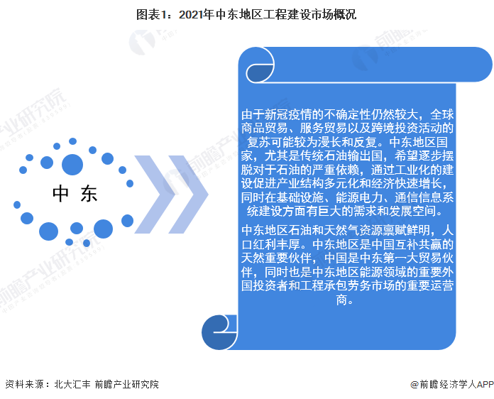 中东地区一直是国际工程承包的主要市场之一,每年工程总额达到千亿美元以上。中东地区是中国“一带一路”建设的重点地区,也是中国一贯重视的发展中国家集中之地。