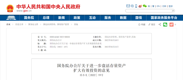 同日,国务院办公厅发布关于进一步盘活存量资产扩大有效投资的意见。