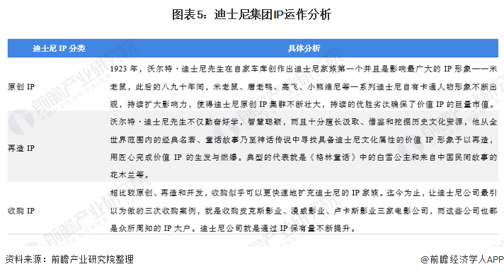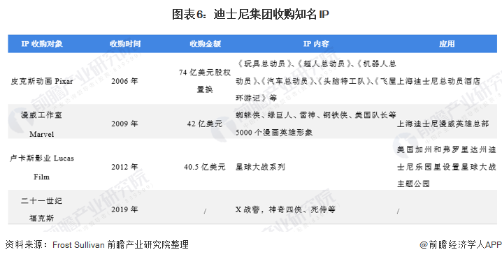 IP是迪士尼的核心竞争力,迪士尼公司增强IP的方式分三种:自主创新开发、再造、和并购IP。迪士尼的产业链以IP为核心,其本身就有大量丰富的优秀内容和形象,围绕其创造的米老鼠、唐老鸭、白雪公主等经典动漫形象,为建立主题公园打下基础。并且自2006年迪士尼相继收购皮克斯、漫威、卢卡斯影业,将众多具有可持续内容开发价值的优质形象收入旗下。在完成收购皮克斯后,迪士尼改变了以儿童和女性为主要动漫形象的传统印象,使其角色形象延伸到全年龄段,进一步提升迪斯尼的品牌价值、并丰富其内容和动漫形象,也促进迪士尼平台价值的进一步提升。